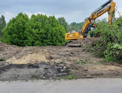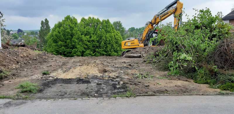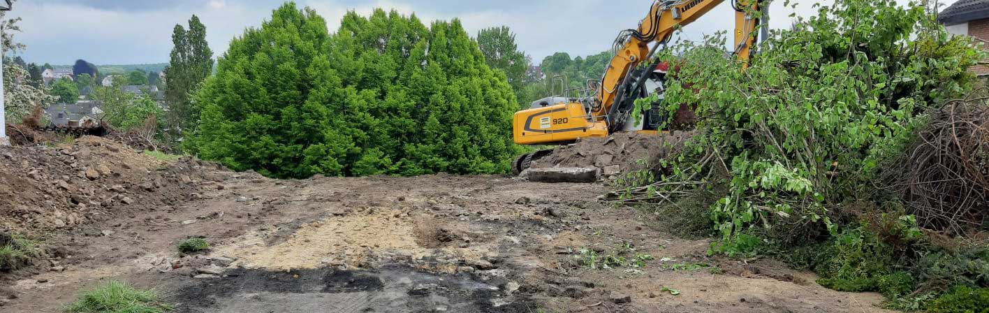 Im Rahmen der Baufeldräumung bietet Möller GmbH Garten- & Landschaftsbau u. a. Baumfällungen, die Rodung von Bäumen und Sträuchern und das Ausfräsen der Stubben an.